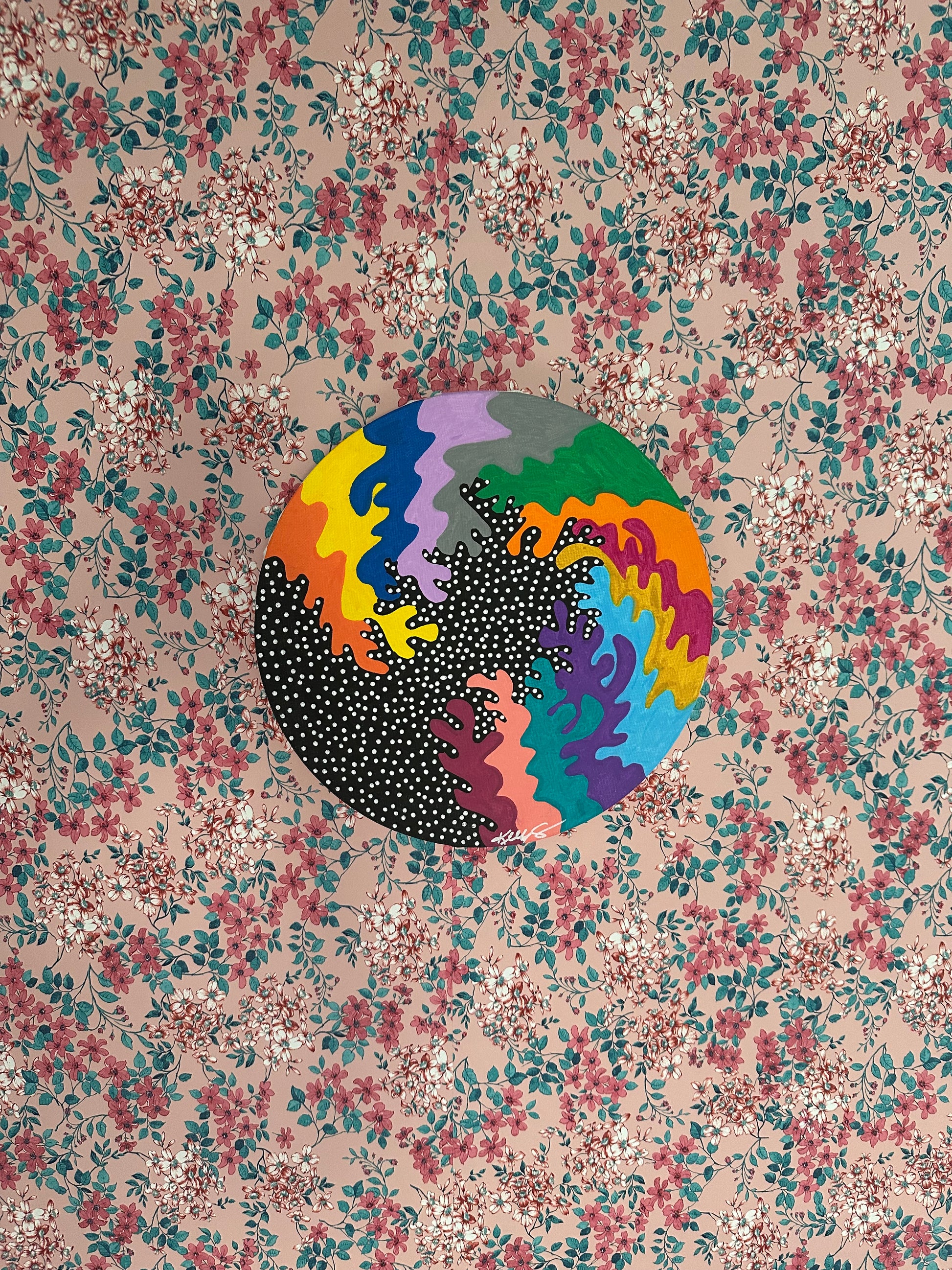 This is an unframed 10 inch circular canvas.